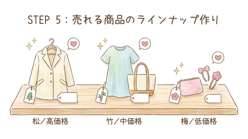 - 梅(低価格): 初めての方が買いやすい入り口商品(小物など)