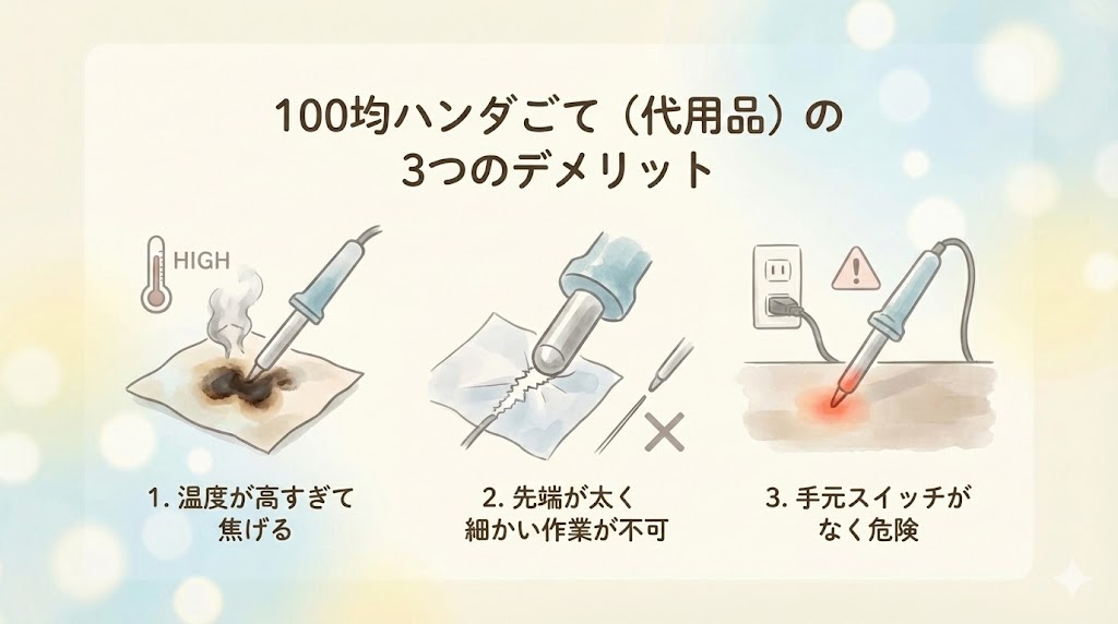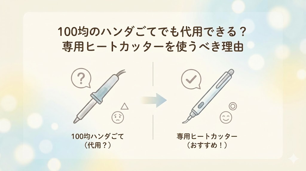 ヒートカッターの導入を考えたとき、「わざわざ専用の道具を買わなくても、100均のハンダごてで代用できないかな?」と思う方も多いはずです。