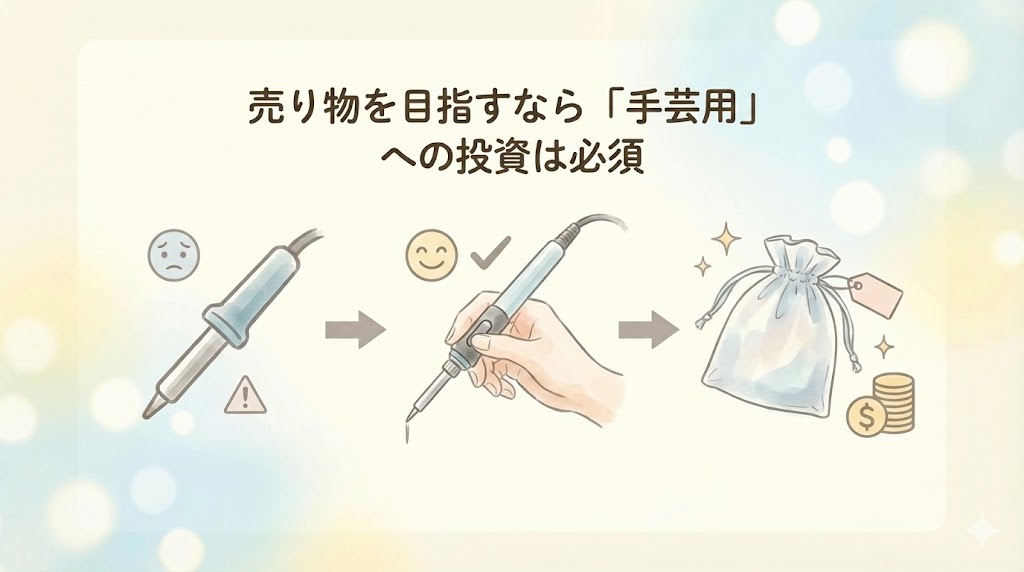 「作品を自信を持って販売したい」と考えるなら、最初から専用のヒートカッターを手に入れるのが、結果的に一番の近道になりますよ。