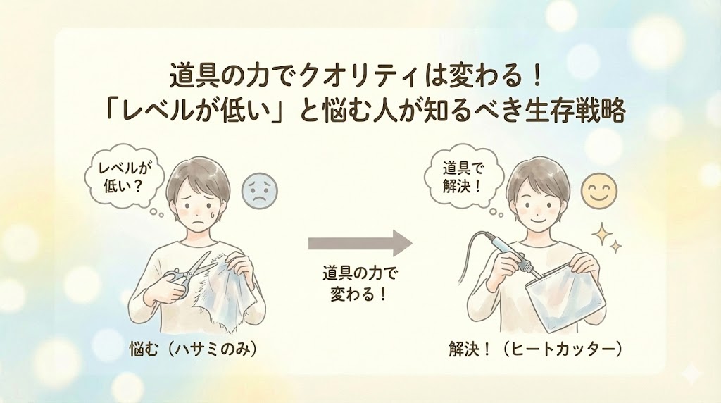 ヒートカッターを使えば、昨日までガタガタだった端処理が一瞬で売り物レベルに変わるように、「正しい道具選び」は、技術不足を補う立派な戦略の一つです。