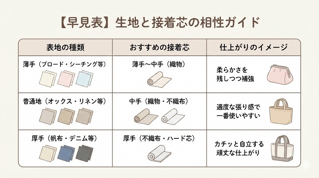 【早見表】生地と接着芯の相性ガイド
