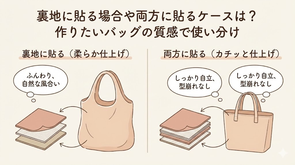 裏地に貼る場合や両方に貼るケースは?作りたいバッグの質感で使い分け