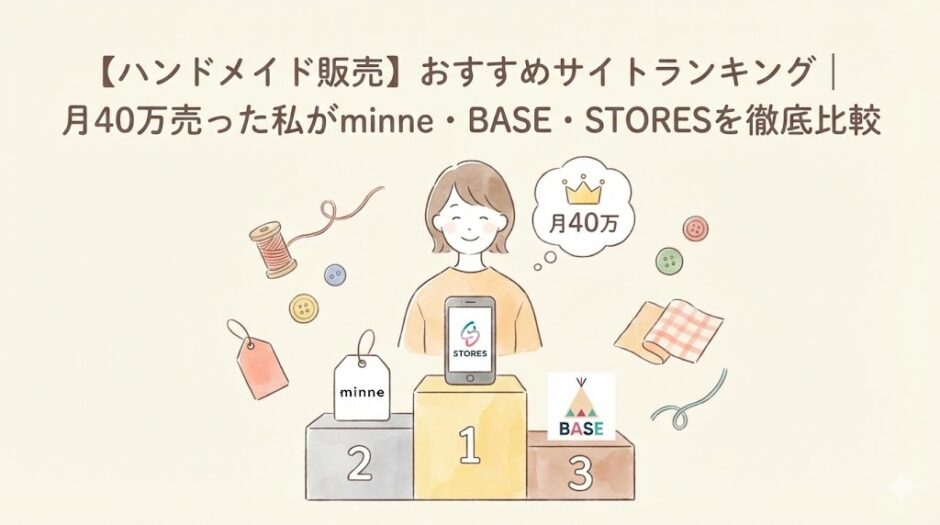 【ハンドメイド販売】おすすめサイトランキング|月40万売った私がminne・BASE・STORESを徹底比較