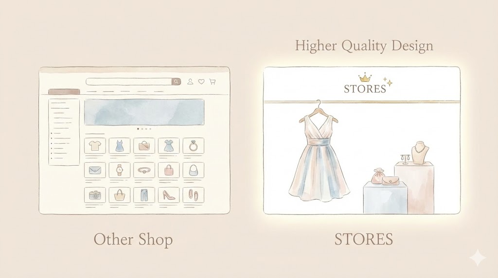 もしあなたが、私のようにお洋服やアクセサリーを作っていて、「作品の世界観を大事にしたい」「高見えさせたい」と思うなら、絶対にSTORESのデザインがしっくり来るはずですよ。
