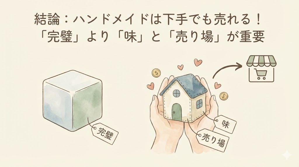 結論:ハンドメイドは下手でも売れる!「完璧」より「味」と「売り場」が重要
