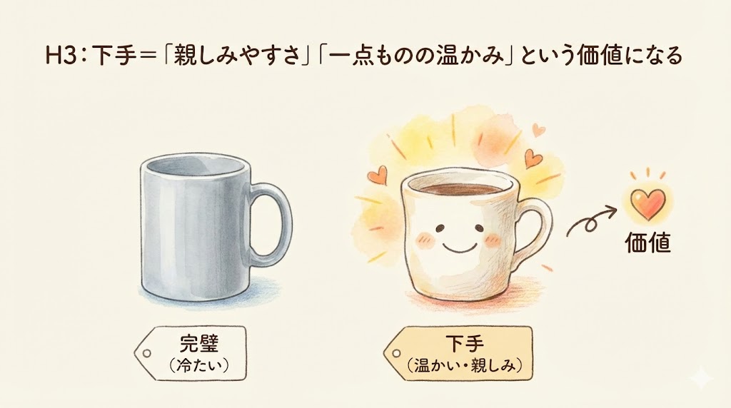 下手=「親しみやすさ」「一点ものの温かみ」という価値になる