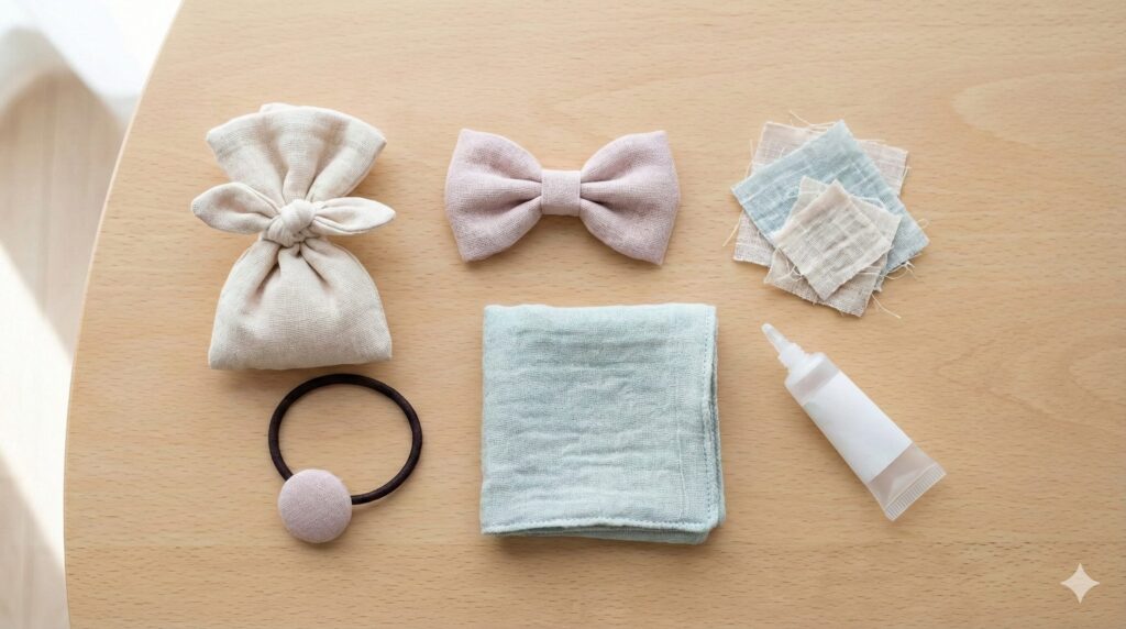結論から言うと、ダブルガーゼはぎれの使い道は「縫わない」簡単な活用術や、洗練された「大人向け」の小物へリメイクするのが正解です。
