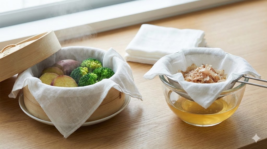 白ガーゼなら「蒸し器用の布」や「出汁こし」に