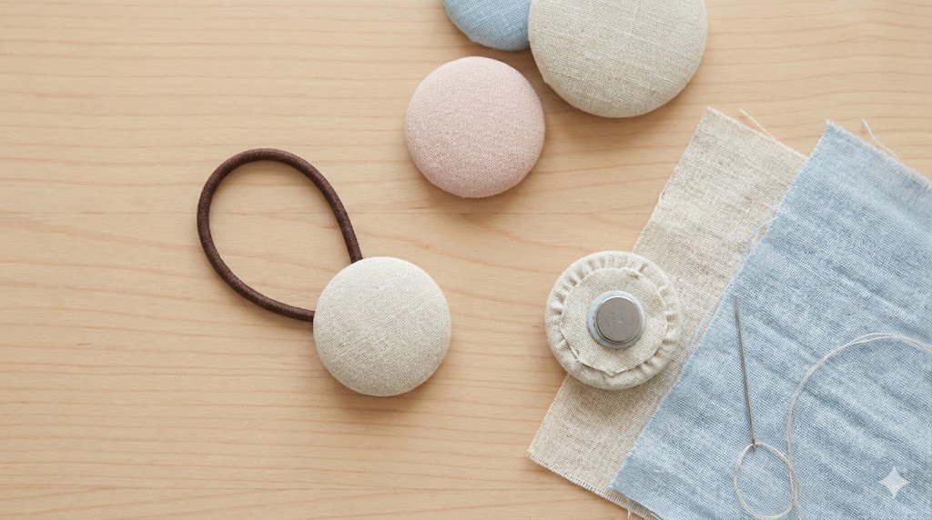 「くるみボタン」で上品なヘアゴムやマグネットに
