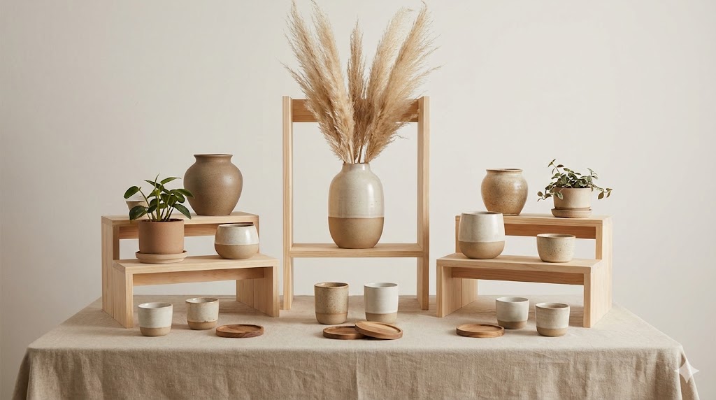 そのまま使うだけでなく、お気に入りの布を掛けたり、作品の雰囲気に合わせて塗装したりすることで、安っぽさを感じさせないおしゃれな展示台になります。