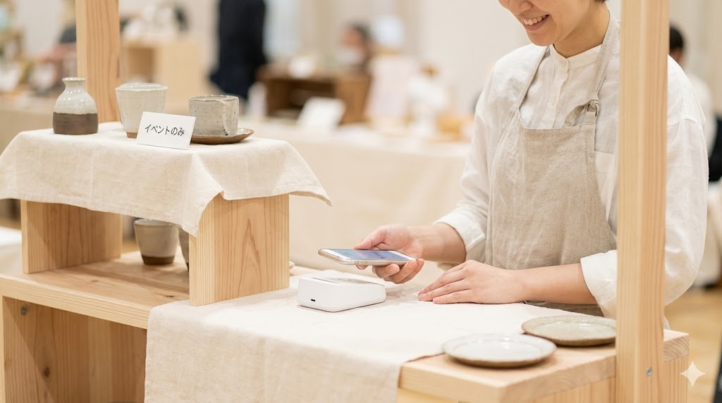 現金の持ち合わせがないお客様を逃さないだけでなく、「手持ちを気にせず、セット買いや高額作品を選んでもらえる」というメリットは、たった1日の出店でも十分に元が取れる効果があります。