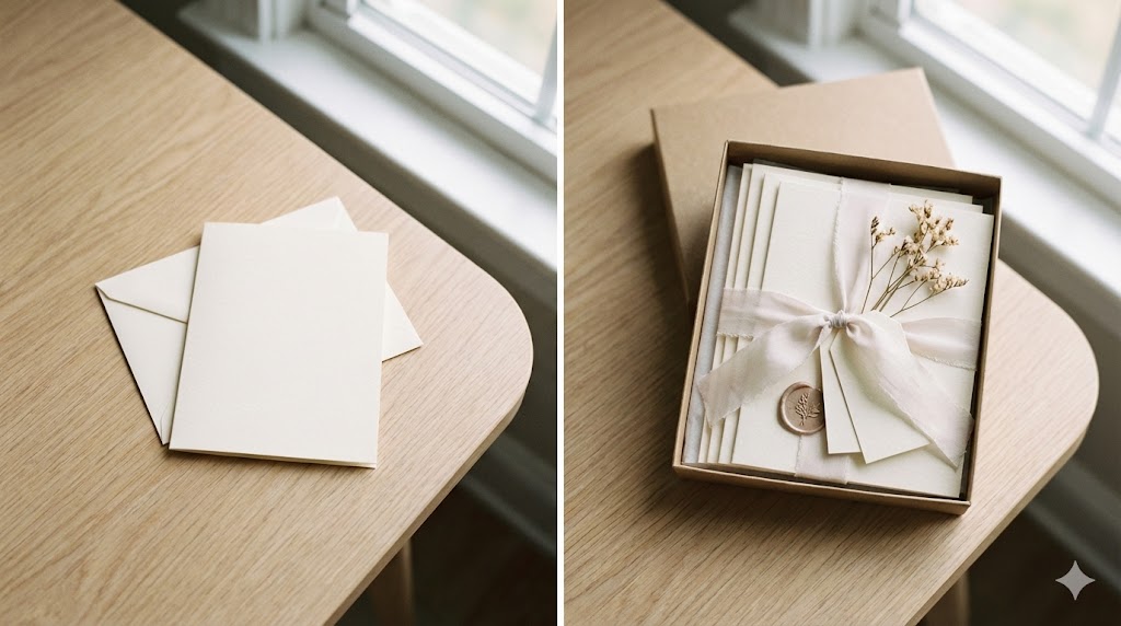 - 活用例:メッセージカード1枚(300円)→ 「20枚セット+予備の封筒付き(1,200円)」